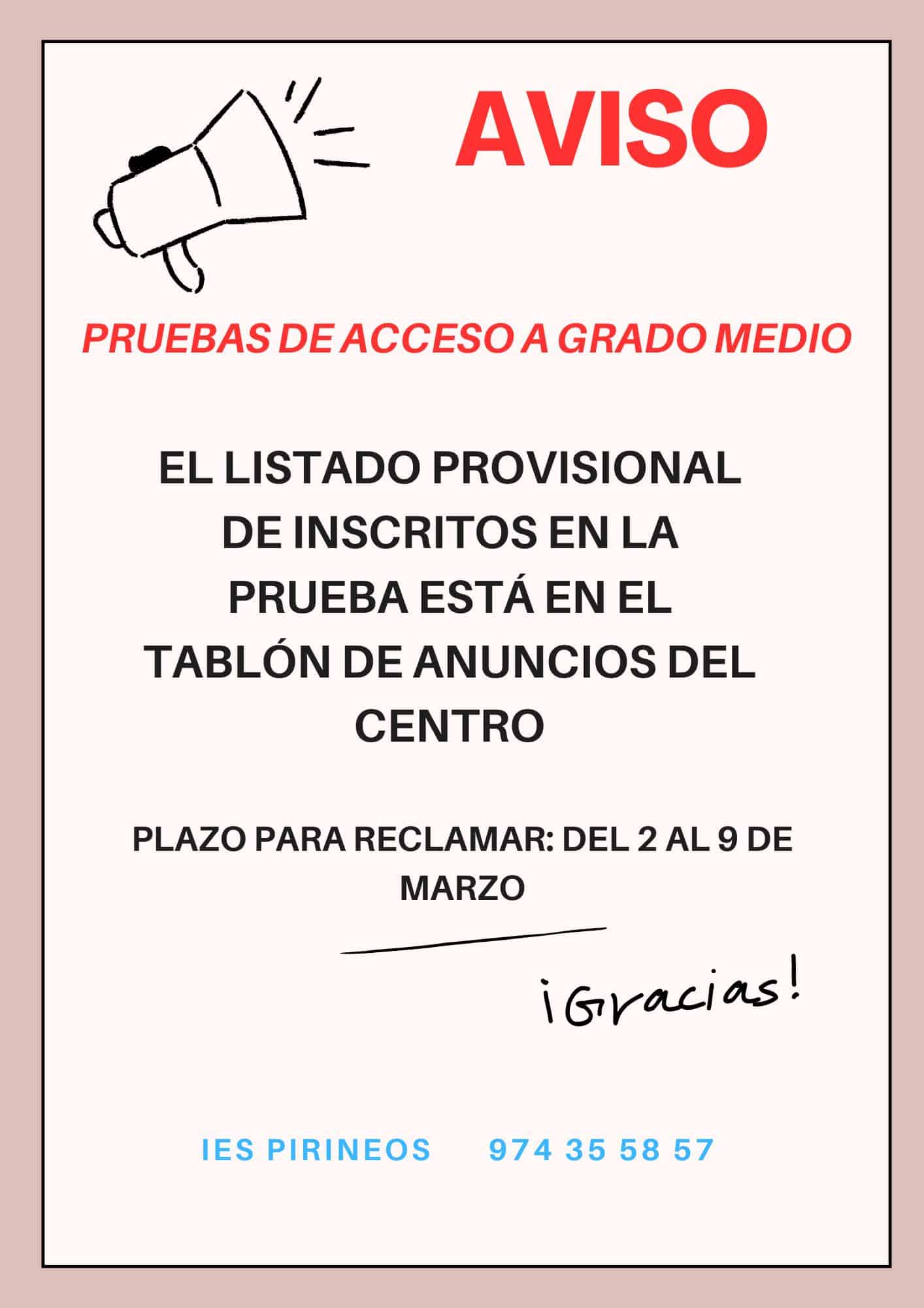 El listado provisional de inscritos en la prueba está en el tablón de anuncios del